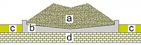 The tower is 14 metres (46 ft) high and has massive masonry walls about 3 metres (9.8 ft) thick with a number of apertures to let in air. Inside there is a massive column made of concrete. At night, the whole structure is allowed to cool, and during the day warm moist air enters the structure via the high apertures, cools, descends, and leaves the building by the lower apertures.[26] Knapen's intention was that water should condense on the cool inner column. In keeping with Chaptal's finding that the condensing surface must be rough and the surface tension must be sufficiently low that the condensed water can drip, the central column's outer surface was studded with projecting plates of slate. The slates were placed nearly vertically to encourage dripping down to a collecting basin at the bottom of the structure.[3] Unfortunately, the aerial well never achieved anything like its hoped-for performance and produced no more than a few litres of water each day.[27]