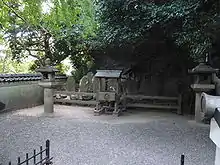 Akama Shrine (赤間神宮, Akama Jingū) is a Shinto shrine in Shimonoseki, Yamaguchi Prefecture, Japan. It is dedicated to Antoku, a Japanese emperor who died as a child in the Battle of Dan-no-ura (aka Dannoura), which occurred nearby in 1185. This battle was important in the history of Japan because it brought an end to Genpei War in which the Minamoto clan defeated the rival Taira clan, and ended the Taira bid for control of Japan.