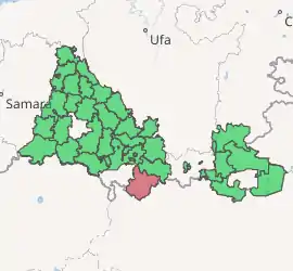Akbulaksky District (Russian: Акбула́кский райо́н; Kazakh: Ақбұлақ ауданы, Aqbulaq aýdany), also known as Ak-Bulaksky District (Ак-Булакский район), is an administrative[1] and municipal[6] district (raion), one of the thirty-five in Orenburg Oblast, Russia. The area of the district is 5,000 square kilometers (1,900 sq mi).[3] Its administrative center is the rural locality (a settlement) of Akbulak.[2] Population: 25,606 (2010 Census);[4] 30,723 (2002 Census);[8] 29,683 (1989 Census).[9] The population of Akbulak accounts for 54.4% of the total district's population.[4]