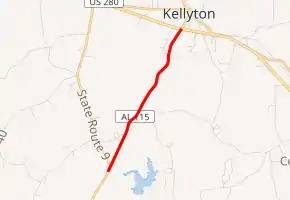 State Route 115 (SR 115) is a 3.250-mile-long (5.230 km) state highway in Coosa County. The southern terminus of the highway is at an intersection with SR 9 in the eastern part of the county. The northern terminus is at an intersection with U.S. Route 280 (US 280) northwest of Alexander City in Kellyton.