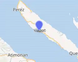 Alabat, officially the Municipality of Alabat (Tagalog: Bayan ng Alabat), is a 5th class municipality in the province of Quezon, Philippines. According to the 2020 census, it has a population of 15,936 people. [4]