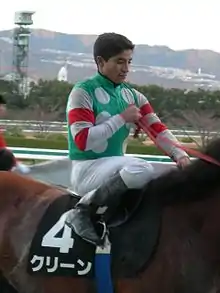 Alan Garcia (born October 2, 1985) is a Thoroughbred horse racing jockey. He was Peru's leading apprentice jockey in 2003 and in that same year he began racing in the United States at the Meadowlands Racetrack where he was also the leading apprentice. His father and grandfather were both jockeys in Peru. He is currently married and lives in Port Saint Lucie, Florida, with his wife and 3 sons. Garcia got his big break in 2007 when he won the Breeders' Cup Filly & Mare Turf. This was his first ever Breeders' Cup ride. The win, on Lahudood, meant that he was the third jockey ever to win his first Breeders' Cup race in his first attempt.[1]