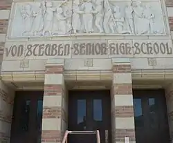 Albany Park Theater Project was cofounded in April 1997 by David Feiner and the late Laura Wiley. Moving about the North Side in the vicinity of Lawrence Avenue, APTP would move from Horner Park, to a church basement, to Jensen Park, before finally settling in 2001 in its current home is at Eugene Field Park, where APTP is a Chicago Park District Arts Partner in Residence.[5][6] Through weekly workshops at the park as well as workshops at Roosevelt High School, APTP recruited teens without theater experience between the ages of 13 and 20, and trained them through theater games, reading, and more to promote their skills as youth artists. APTP's first production performed at Eugene Field Park was 2001's Matches in the Dark. After this production, APTP began to receive attention from Chicago press and theater critics and writers such as the Chicago Tribune and Chicago Sun-Times.[7][8][9] When APTP's first group of high school seniors were about to graduate, APTP began a college counseling program that has gone to send over 90% of its participants to college, where 80% graduate by age 24 (seven times the national rate for low-income students). In 2015, APTP received a $100,000 grant from the suburban Chicago chapter of Impact100 to create a full scale version of Learning Curve, an immersive theater production about Chicago Public Schools created with nationally-acclaimed Third Rail Projects of Brooklyn, New York.[10][11] In February 2016, APTP received a $400,000 grant from the MacArthur Foundation and in July 2016, Learning Curve had its world premiere, receiving wide acclaim and national attention as the first large-scale, immersive theater show devised and performed by teen artists.[12][13] APTP has had a longterm relationship with the internationally acclaimed Goodman Theatre, Chicago's oldest currently active nonprofit theater organization.[14] Board members of the theater include Northwestern University professor and actor Henry Godinez and former Executive Vice President, Global Government Relations for Royal Dutch Shell Roxanne Decyk.