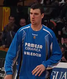 ![]() Miralles, in a warm-up with Pamesa Valencia | |