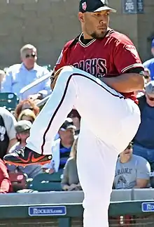 ![]() Suárez pitching for the Arizona Diamondbacks in 2018 spring training | |