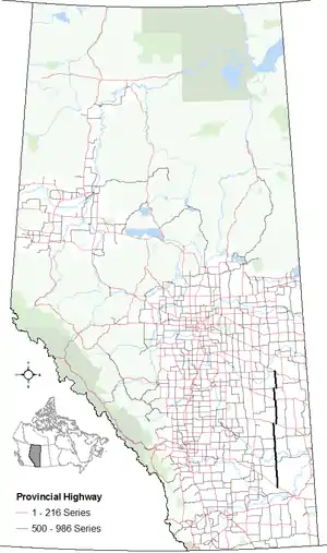 - "Provincial Highways 500 - 986 Progress Chart" (PDF). Alberta Transportation. March 2015. Retrieved December 26, 2016.