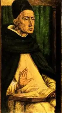 Albertus Magnus[lower-alpha 1] OP (c. 1200 – 15 November 1280), also known as Saint Albert the Great or Albert of Cologne, was a German Dominican friar, philosopher, scientist, and bishop. Later canonised as a Catholic saint, he was known during his lifetime as Doctor universalis and Doctor expertus and, late in his life, the sobriquet Magnus was appended to his name.[6] Scholars such as James A. Weisheipl and Joachim R. Söder have referred to him as the greatest German philosopher and theologian of the Middle Ages.[7] The Catholic Church distinguishes him as one of the 37 Doctors of the Church.