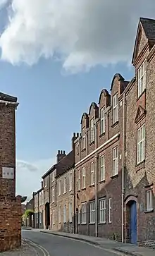 The Merchant Taylors' Hall was built on the street in about 1415, and in the 17th- and early 18th-centuries, it was regarded as a desirable area, with several large houses constructed. The first Wesleyan Methodist chapel in the city was built at 40-42 Aldwark in 1759, and in 1892, the city's first synagogue since the resettlement of the Jews in England opened at 9 Aldwark. However, by the 19th-century, the street was run down, with many houses on the north-east side demolished for the construction of the Ebor Brewery, and various other industrial buildings being constructed.[1][2][3]