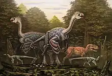 Alectrosaurus was first recovered from the Iren Dabasu Formation, which has been dated to the Cenomanian stage, about 95.8 ± 6.2 million years ago.[17] During the Late Cretaceous, there was a large floodplain with braided fluvial environments in the formation. The floodplain environments had extensive vegetation, evidenced in the palaeosol development and the numerous herbivorous dinosaurs that were found in both the river channel and the floodplain sediments.[6] Contemporaneous paleofauna from this formation included other theropods such as Archaeornithomimus, Caenagnathasia, Erliansaurus, Gigantoraptor and Neimongosaurus; the sauropod Sonidosaurus and the two hadrosauroids Bactrosaurus and Gilmoreosaurus. Alectrosaurus likely preyed on these two.[18][19] Additional to this, a potential discovery was made on the Bayan Shireh Formation at the Bayshi Tsav locality.[2] The Bayan Shireh Formation is estimated to be Late Cretaceous in age, during the Cenomanian-Santonian stages, about 95.9 ± 6.0 million to 89.6 ± 4.0 million years ago, similar to Iren Dabasu.[20][21] Here, Alectrosaurus lived alongside diverse theropods such as Achillobator, Garudimimus or Segnosaurus. Ankylosaurs were represented by Talarurus and Tsagantegia, other herbivorous dinosaurs include Graciliceratops, Gobihadros and Erketu.[22][23][24]