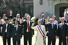 His administration was characterized by the beginning of the country's macroeconomic boom, promoting foreign investment, the signing of free trade agreements, and the implementation of various investment projects in infrastructure and human development.[5] At the same time, Toledo suffered a governance crisis, scandals in his personal life and allegations of corruption against his inner circle, signs that hit his popularity until he fell to 8% of popular approval.[6][7] Subsequently, he would try to regain the presidency in the 2011 general election, placing fourth. He ultimately placed eighth in the 2016 general election.[8][9][10][11][12][13]