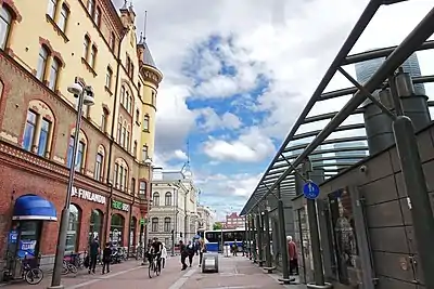Aleksis Kiven katu, which is named after Aleksis Kivi, the Finnish national author,[5] is one of the most important streets in Tampere, both in terms of location and status. Along it are, among other things, the city's most important administrative buildings, the Tampere City Central Office and the Tampere City Hall.[6]
