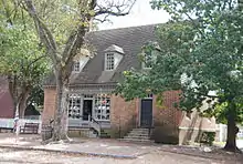 Purdie owned a residence in colonial Williamsburg on a 0.5-acre (0.20 ha) lot. The legal description of its location is Block 9 lot 24 and is known further today as building 28A.[2] The house was reconstructed by the Colonial Williamsburg Foundation based on the original underground foundation.[2] It is located on Duke of Gloucester Street next to the King Arm's Tavern, about a block from the Capitol.[2] Purdie purchased the Williamsburg lot and house from the estate of Joanna McKenzie in 1767 with a Dr James Carter being the administrator. He paid "300 pounds current money of Virginia."[2] The lot already had by 1707 "one good dwelling house thereon."[7] Purdie lived in the house and ran a store that sold yarn goods and wearing apparel from it.[7]
