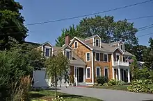 The Alfred Drowne Road Historic District of Barrington, Rhode Island, encompasses a suburban area developed between about 1860 and 1910, a period of significant suburban growth in Barrington spurred by the connection of the town by rail to Providence in 1855. This 27-acre (11 ha) residential area was before that time farmland owned by Alfred Drown, whose c. 1830 farmhouse still stands at 13 Alfred Drowne Road. The house of his son Benjamin, built c. 1856, is at number 27. The district includes properties along Alfred Drowne Road, as well as a few properties on Washington Street and Annawamscutt Road which are immediately adjacent.[2]