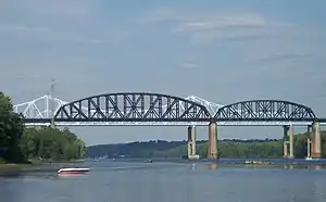 ![]() Foreground: Alfred H. Smith Bridge; Background: Castleton Bridge. Seen from the west shore, south of the bridges. | |