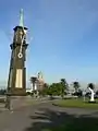 To the north of the square is a plaque embedded into volcanic rock erected by the City of St Kilda to commemorate the site of the first recorded building in St Kilda which it states to be a "stockman's hut erected circa 1840 by Captain Benjamin Baxter". In 1842, the first Government plan of the village of St. Kilda showed a hut at the south west corner of the reserve.[1] This hut, the first recorded dwelling in St. Kilda, was likely to have been occupied by a stockman employed by George Thomas and John Enscoe, of the shipping agents, Thomas, Enscoe & James, who had a business at the corner of Flinders and Williams Street, Melbourne. The hut is likely to have been first built during Baxter's lease.[1]