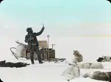 In 1909, de Quervain led an expedition to Greenland. From Ikerasak, Dr. E. Bäbler and Dr. A. Stolberg accompanied him on a journey ca. 250 km onto the inland ice sheet. Subsequently, with Bäbler and Arnold Heim, he ascended the Karajak Nunataks to survey the glaciers for comparison with observations by Erich von Drygalski 16 years earlier.[4]