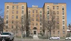 The Alhambra Apartments is a historic building located in Sioux City, Iowa, United States. The city experienced a building boom in 1929, and this building was constructed at that time by American Builders Incorporated of Lincoln, Nebraska. It was one of five apartment buildings built in the city that year, and based on the cost of construction it was the largest.[2] The six-story U-shaped building rests on top of an underground parking garage. The residents could access the garage by way of an elevator. The building is composed of reinforced concrete faced with tan brick and terra cotta trim. Its design is an eclectic mix of architectural styles with Moorish influences.[2] The Alhambra is located in a residential called the Near North-Side, just outside of the central business district. It was listed on the National Register of Historic Places in 2001.[1]