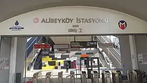 Alibeyköy is a metro station on the M7 line of the Istanbul Metro in Eyüpsultan.[1] The station is located on Atatürk Street in the Alibeyköy neighborhood of Eyüpsultan.