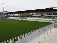 The AOK Stadium in the Allerpark was constructed between 2013 and 2015.[38] It is the home stadium of the women's and youth teams of the VfL Wolfsburg football club.[39] The new construction has played a particularly important role in further supporting and promoting women's football.[40] The AOK Stadium is also home to the VfL Football World, an interactive exhibition about the club.[41] It is located directly next to the Volkswagen Arena to the west of the Allersee lake.[42]