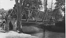 Bulldozers carved Schwimmer Drome out of the jungle. Only a few feet above the normal level of the Laloki River, it was susceptible to periodic flooding. The base material used for the 1,402-by-30-metre (4,600 by 100 ft) runway was laid over alluvial sand and gravel, and Marston Mat used for the surface. The resulting runway was not capable of all-weather operation, so a second runway was constructed parallel to the first. This time gravel dredged from the Laloki River was used as a base. It was spread while wet and then rolled to form a firm base. Marston Mat was removed from the original to provide a surface for the new 1,524-by-30-metre (5,000 by 100 ft) all-weather runway, which was ready for use in November 1942. A low trestle bridge over the Laloki River provided access. It was understood that the bridge might be washed away by floods, so pontoon equipment was provided for this eventuality.[82] This was needed; a downpour on 21 October swept away the bridge, and rendered Three Mile, Seven Mile and Thirty Mile non-operational.[89] The bridge was replaced by a high steel structure.[82]