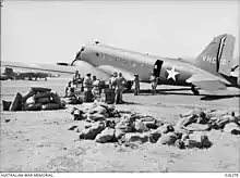 On 21 May, the 21st Transport Squadron had a B-18, two C-39s, a C-47, three C-53s, two ex-KNILM DC-2s, two ex-KNILM DC-3s, three ex-KNILM DC-5s, two ex-KNILM L14s, and three O-47s. The 22nd Transport Squadron had a B-17, two C-39s, a C-47, a B-18, an ex-KNILM L-14, and eleven ex-RNEIAAF C-56s.[137] The 21st Transport Squadron flew its first mission in New Guinea on 22 May, flying from Port Moresby to Wau and Bulolo with supplies for Kanga Force, the small Australian garrison there.[138][139] Thereafter missions were frequently flown; but the two squadrons were still based in Queensland, not Port Moresby, and would not relocate there until the following year.[140] The RAAF formed four transport squadrons in February and March 1942,[141] and No. 33 Squadron RAAF began flying a regular passenger and freight service from Townsville to Port Moresby on 5 March.[142] It received Avro Ansons in September and a detachment was sent to Port Moresby the following month.[143] Aircraft of No. 36 Squadron RAAF also made occasional trips to New Guinea in 1942, and twenty RAAF pilots were seconded to US troop carrier squadrons.[144]