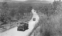 At this point the route Owers surveyed departed from the mule track. The track descended down the ridge on a grade too steep for motor vehicles, so the road then proceeded along the ridge line. The 7th Field Company then encountered 120 metres (6 chains) of rock, which had to be drilled and blasted. The jeep track was abandoned at this point, but work continued on a mule track, which was advanced about 3 kilometres (2 mi) per day until mid-September, when the engineer units were withdrawn to Port Moresby due to the deteriorating tactical situation, with the Japanese closing in on Ioribaiwa. Work resumed on 28 September, but was abandoned in early October.[103][104] Units working on the road were supplied by pack transport.[105] Improvements to the road allowed 3-ton trucks to reach Owers' Corner on 28 September. The jeeps were then moved to a new line of communications running from Itiki through Subitana.[106]