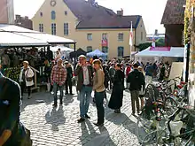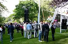 Almedalen Week is an annual event taking place in week 27 in and around Almedalen, a park in the city of Visby.[13] It is coordinated by Gotland Municipality and the cost of the different activities is carried by the organization responsible for it.[14] Each day of the week is dedicated to one of the political parties represented in the Riksdag, on a rotating schedule.[15] In 2011, the number of days were extended to eight since there were then eight parties in the Riksdag.[8] A number of other lobbyists, organizations, companies and representatives from municipalities and countries are also present.[15]