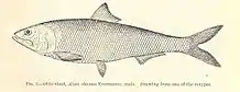 The Alabama shad (Alosa alabamae) is a species of clupeid fish endemic to the United States where it breeds in medium to large flowing rivers from the Mississippi River drainage to the Suwannee River, Florida, as well as some Gulf coast drainages. The biology and status of this fish is little known but it has become increasingly rare. The International Union for Conservation of Nature has rated it "data deficient" and the United States National Marine Fisheries Service has listed it as a Species of Concern. Reasons for its decline are thought mainly to be because of the many locks and dams blocking access for the fish to up-river spawning grounds.