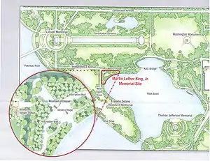 96. Wheeler, Linda (December 5, 2000). "'Sacred Ground' Dedicated to King; Plaque Placed at Site of Memorial for Civil Rights Leader". The Washington Post. Archived from the original on October 25, 2012. Retrieved April 16, 2009.