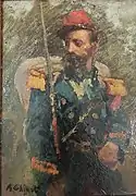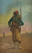 The 18 year old Chigot enlisted in a regiment of Chasseurs à Pied, (light infantry) in 1842. It was a defining moment in his life. Many years after he had demobbed he was still wearing aspects of military uniform.[3] Chigot served in Algeria with French forces under Governor-general Maréchal Bugeaud in 1844 and saw action in the Battle of Isly on August 14, 1844. The French forces routed a larger but poorly organised Moroccan force under Sultan Abderrahmane. Chigot performed bravely earning a citation and promotion to a higher non-commission post. He was also present at the recapture of the Marabout of Sidi Brahim, from Abdelkader El Djezairi's Algerian forces on December 23, 1847.[4] As a painter Chigot would return to these years and paint academic Orientalist paintings. He remained fascinated all his life by ... scenes of the oriental life, the sparkling fantasies, the golden rocks scorched in the warm light... the red sunsets of the desert...[5] After a successful career during which he reached the rank of serjeant, Chigot resigned from the army in October 1849.