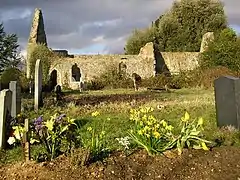 The village contains the ruins of St. Peter's Church which are now a scheduled monument under the care of Essex County Council[95] The earliest church was built in the 12th century as a simple nave and cancel. At the south-west and north-west corners Roman bricks were used for the quions.[96] In the 13th century the chancel was extended. The church was again rebuilt in the 14th century and a singled tower added.[97] This was recorded on a gravestone as being funded by Anfred de Staunton in 1320, who had recently become Lord of the Manor of Alresford.[98] St Peter's was then extended again in the 1840s.[99] The first known Rector was Thomas Parker, succeeded in 1332 by Stephen de Berle on the presentation of Sir Humphrey de Staunton. There has been an unbroken line of over 50 Rectors since then.[100]