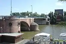 Alte Brücke (German: "old bridge") is a bridge in Frankfurt, Hesse, Germany. It is the oldest bridge over the lower course of the river Main, and until 1886 was the only stone bridge crossing the river. From the Middle Ages until the year 1914, it connected the "Fahrgasse" in Frankfurt Altstadt with the "Brückenstraße" in Sachsenhausen. Since its first mention in official documents in 1222, the development of Frankfurt has been strongly influenced by the bridge. Over the centuries, Alte Brücke has been destroyed and reconstructed at least 18 times. With its 13 brick-built circular arches, the Sachsenhausen Bridge was one of the most prominent buildings of the city, but failing to meet the increasing demands of the modern road and ship traffic, it was demolished in 1914.