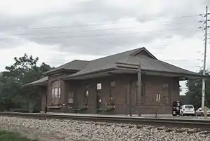 The former Alton Railroad station, later used by the Gulf, Mobile and Ohio Railroad was built of brick. This station was located on College Avenue, south of the current station location. The 1928-built station was demolished after the current transportation center was opened.[2]
