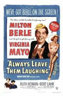 Always Leave Them Laughing is a 1949 musical comedy-drama film directed by Roy Del Ruth and starring Milton Berle and Virginia Mayo.[2]