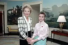 In the late 1980s, Milano contacted Ryan White, a preteen boy ostracized for having AIDS, and a fan of hers.[14][68] She attended a party for him where she sat with him for six hours making friendship bracelets.[69] They appeared together on The Phil Donahue Show, where Milano kissed White to emphasize that people do not catch the disease through casual contact.[70]