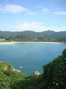 Amakusa-machi is famous for its scenic coastline along the Amakusa-nada sea, including a natural, white sandy beach in Takahama called Shiratsuru-hama 白鶴浜 and beautiful, strange rock formations in the bay Myoken-ura 妙見浦. Shimoda-kita is also home to a famous hot spring which, according to legend, was discovered by a white heron. Many tourists come to Amakusa-machi to enjoy these leisure spots.