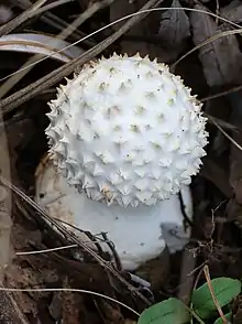 Amanita pyramidifera is a basidiomycete mushroom of the genus Amanita found in eastern Australia. Growing in moist sites associated with eucalyptus forest or rainforest. The cap is 80 to 210 mm in diameter, covered in pyramid type scales which may be white or greyish brown. The stem is 50 to 90 mm long, white with pyramidal scales.[1][2][3]