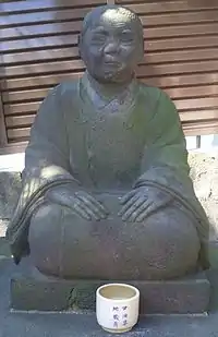 Amazake-babaa (甘酒婆, "amazake hag") is an old woman yōkai from the folklore of Miyagi and Aomori prefectures. She is rumored to come to the doors of houses late at night asking for amazake in a childlike voice, but if anyone answers they fall ill. It was said that to keep her away, a cedar branch is placed in the doorway. She was also known as the goddess of smallpox in a time when smallpox ran rampant in Japan. Mothers will give offerings to amazake-babaa in order to prevent their children from falling ill.