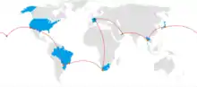On 23 March 2012, it was announced that Canal+ had acquired the format for a French version of the show. Filming started on 30 June 2012 in Paris. Teams travelled to seven countries for 24 days, spanning over50,000 kilometres (31,000 mi) in five continents, finishing on 23 July at the Stade de France.[3][4] This season visited the United Arab Emirates, Thailand, Japan, the United States (making it the first foreign version of the show to visit this country), Brazil and South Africa. Among the highlights are a leg in the streets of Bangkok, an African safari, an excursion to Iguazu Falls and the beaches of Rio de Janeiro. Teams also visited Tokyo, Dubai, Los Angeles, Hawaii and Cape Town.
