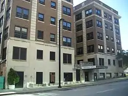 The structure is a brick, six-story building designed in the Georgian Revival architectural style containing Beaux-Arts elements. It opened as the upscale 310 West Church Street Apartments in 1924. Designed by Hentz, Reid and Adler architects, the building was designed in an "H"-shape to provide windows in all of the units. The main entrance is fronted by large rusticated ashlar stonework, set with a scroll keystone.[4]