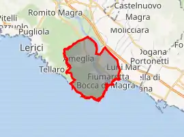 Ameglia (Ligurian: Ameggia, locally Megia[4]) is a comune (municipality) in the Province of La Spezia in the Italian region of Liguria, located about 90 kilometres (56 mi) southeast of Genoa and about 11 kilometres (7 mi) southeast of La Spezia.