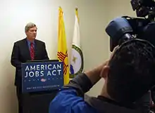 The American Jobs Act (S. 1549) (H. Doc. 112-53)[1] and (H.R. 12)[2] was the informal name for a pair of bills recommended by U.S. President Barack Obama in a nationally televised address[3] to a joint session of Congress on September 8, 2011.[4] He characterized the proposal as a collection of non-controversial measures designed to get Americans back to work, and he repeatedly urged Congress to pass it "right away"; he also said that the bills would not add to the national deficit and would be fully paid for.[5]