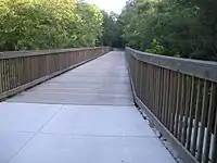 The American Tobacco Trail runs through the city of Durham to the Chatham county line. This segment of the ATT is a designated portion of the East Coast Greenway. A pedestrian bridge was erected over I-40 in April 2013, connecting the northern and southern segments of the Durham County portion of the trail, but due to construction errors did not open until February 2014.[1][2]