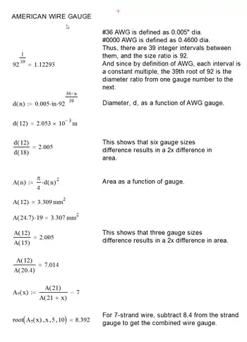 (where n is the AWG size for gauges from 36 to 0, n = −1 for Nr. 00, n = −2 for AWG 000, and n = −3 for AWG 0000. See rule below.[lower-alpha 1])