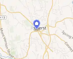 The Amherst Village Historic District encompasses the historic village center of Amherst, New Hampshire. Centered on the town's common, which was established about 1755, Amherst Village is one of the best examples of a late-18th to early-19th century New England village center. It is roughly bounded on the north by Foundry Street and on the south by Amherst Street, although it extends along some roads beyond both. The western boundary is roughly Davis Lane, the eastern is Mack Hill Road, Old Manchester Road, and Court House Road. The district includes the Congregational Church, built c. 1771-74, and is predominantly residential, with a large number of Georgian, Federal, and Greek Revival houses. Other notable non-residential buildings include the Farmer's Bank, a Federal-style brick building built in 1806, and the Amherst Brick School,[2] a brick Greek Revival structure that has served as the School Administrative Unit 39 offices since 1997.[3]