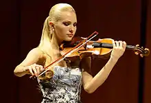 ![]() Anastasiya Petryshak during a concert in June 2015 in the Sala Santa Cecilia in Rome, with a violin by Antonio Stradivari from 1715, "Il Cremonese". | |