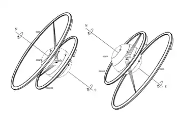 At the origin, after the separation of hot and cold, a ball of flame appeared that surrounded Earth like bark on a tree. This ball broke apart to form the rest of the Universe. It resembled a system of hollow concentric wheels, filled with fire, with the rims pierced by holes like those of a flute. Consequently, the Sun was the fire that one could see through a hole the same size as the Earth on the farthest wheel, and an eclipse corresponded with the occlusion of that hole. The diameter of the solar wheel was twenty-seven times that of the Earth (or twenty-eight, depending on the sources)[47] and the lunar wheel, whose fire was less intense, eighteen (or nineteen) times. Its hole could change shape, thus explaining lunar phases. The stars and the planets, located closer,[48] followed the same model.[49]