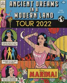 The Ancient Dreams in a Modern Land Tour is an ongoing concert tour by Welsh singer-songwriter Marina. The tour supports her fifth studio album Ancient Dreams in a Modern Land (2021), and visits North America and Europe. The tour began on 2 February 2022 at The Masonic in San Francisco, California, and will conclude on 25 May 2022 at the Olympia in Dublin. The tour is promoted by Live Nation Entertainment.[1][2]