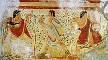 The Romans gradually subdued the other peoples on the Italian peninsula, including the Etruscans.[30] The last threat to Roman hegemony in Italy came when Tarentum, a major Greek colony, enlisted the aid of Pyrrhus of Epirus in 281 BC, but this effort failed as well.[31][30] The Romans secured their conquests by founding Roman colonies in strategic areas, thereby establishing stable control over the region of Italy they had conquered.[30]