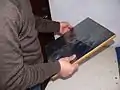 He noticed a cobweb[2] in the corner of the window in his studio.[3] Then he had the idea to create a picture[4] of a cobweb,[5] and began to study the life of spiders,[6] and the structure of their cobwebs.[7] Afterwards, he began to breed spiders[8] in order to use their cobwebs to create pictures. Avetisyan's works are made of real cobweb[9] and this brought him fame almost instantly.[10] He is the first artist who uses cobwebs for pictures (Cobweb art).[11] Andranik Avetisyan was awarded the "New Talent and Creative Thought" prize at the Cannes International Exhibition of Modern Art, which was held in 2017.[12][13]